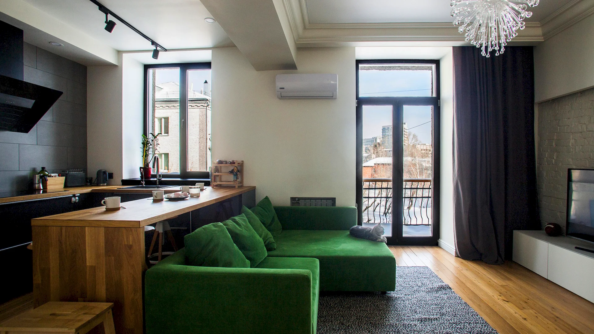 Просторные окна не только улучшают освещение, но и визуально расширяют пространство, делая его более открытым и светлым. Благодаря этому элементу жилище кажется более гостеприимным и свежим.
